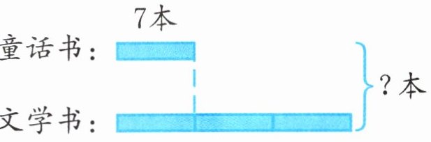 解析:本题考查混合运算,考查对图文的理解及混合运算能力。从图中可知,童话书有$7$本,文学书的本数是童话书的$4$倍,要求两种书一共有多少本,需要先算出文学书的本数,再加上童话书的本数。