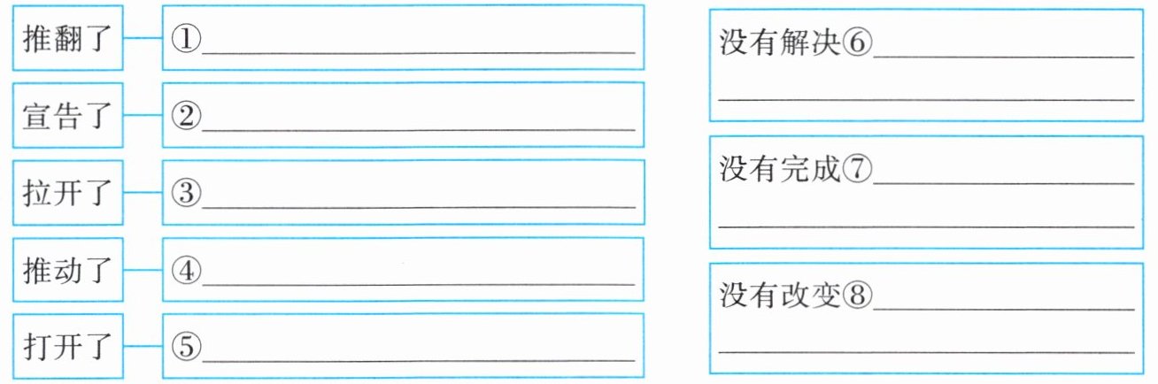 ①清王朝的统治 ②中国两千多年君主专制制度的终结 ③中国完全意义上的近代民族民主革命的序幕 ④中华民族的思想解放 ⑤中国进步潮流的闸门 ⑥近代中国社会的主要矛盾 ⑦民族独立、人民解放的历史任务 ⑧中国半殖民地半封建的社会性质