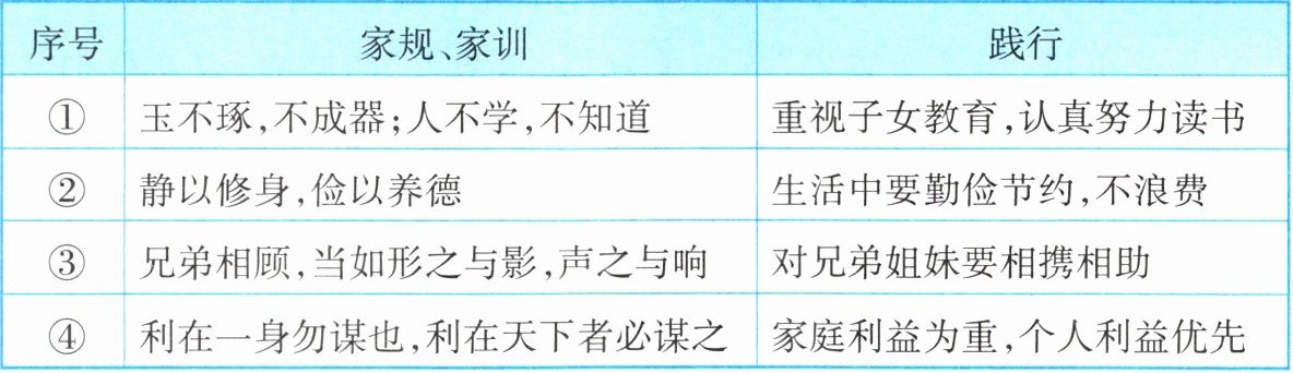 2. 家规是一个家庭的行为规范,一般是一个家族传承下来的教育后代子孙的准则。家训是对子孙立身处世、持家治业的教诲。下列对家规、家训的践行合理的有 ( )