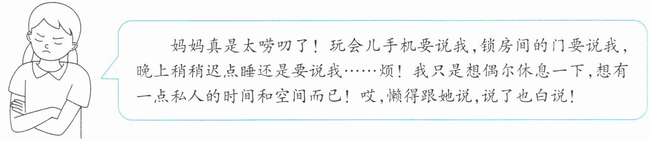 (1)每个家庭的亲情表现不尽相同,有的温馨和睦,有的内敛深沉,有的随和自然……需要我们用心体味亲情之爱。(2)家庭成员要以彼此尊重为前提进行沟通和交流。我们要学会换位思考,有事多商量,主动化解矛盾,增进情感。(3)家书中有感恩之情、爱的沟通与表达、实际行动的导向等。示例:亲爱的爸爸妈妈:从小到大,从生活的点滴中,我都能深刻体会到你们对我的关爱。爱在每天丰富的早餐里,爱在絮絮叨叨的叮嘱里,爱在宽严相济的教育里……感谢你们一如既往的包容与爱。如今,我已经是读初中的大孩子了。虽然偶尔会觉得你们唠叨,有时觉得烦,但我知道唠叨的背后是你们对我浓浓的爱。希望我们每天能多点时间聊聊天,多沟通,我其实有很多想跟你们分享的事情。我一定会孝敬你们,认真学习,多做家务,建设我们的美丽家庭。爱你们!你们的孩子xxx xxxx年xx月xx日