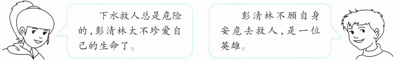 材料二 班级内有同学就彭清林的英勇事迹展开了讨论。