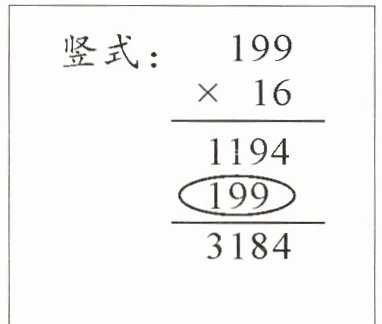 )。竖式:$\begin{array}{r}199\\ × 16\\ \hline 1194\\ \hline 3184\end{array} $