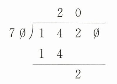 想法:根据有余数的除法,$被除数 = 商×除数 + 余数$。在$1420÷70$中,$70×20 + 2=1400 + 2 = 1402\neq1420$。