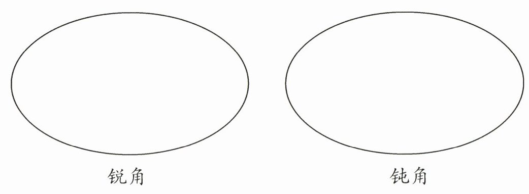 解析:本题考查锐角和钝角的概念,锐角是大于$0^{\circ}$而小于$90^{\circ}$的角,钝角是大于$90^{\circ}$小于$180^{\circ}$的角。我们需要根据这些角度的度数范围,将它们分别填入锐角和钝对应的圆圈里。