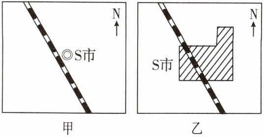 C.甲图中的S市城区面积比乙图小