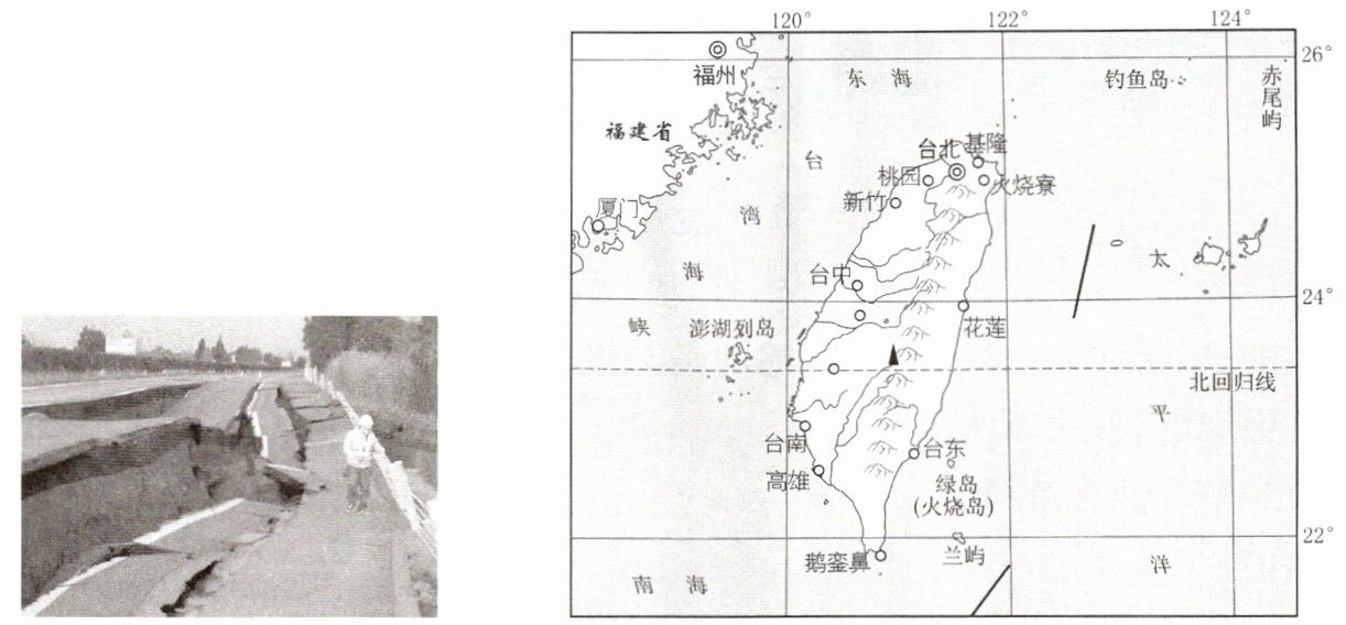 读我国台湾某种自然灾害造成的影响图和台湾省地形图,回答第12、13题。