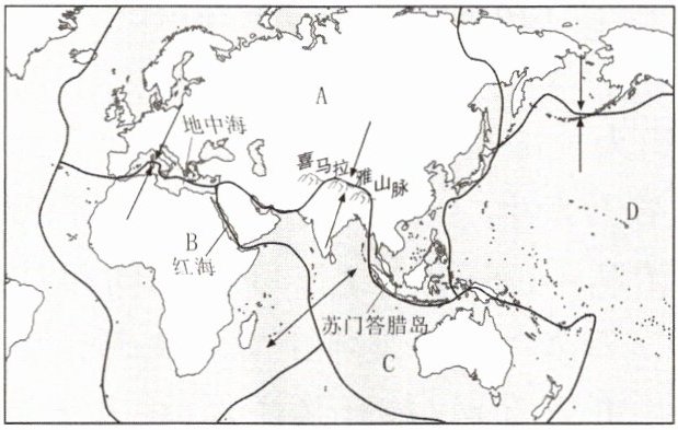 (2)苏门答腊岛火山较多,原因是位于A