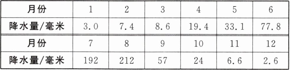 (1)根据表格中的降水量资料,绘制该市多年平均各月降水量柱状图。(4分)