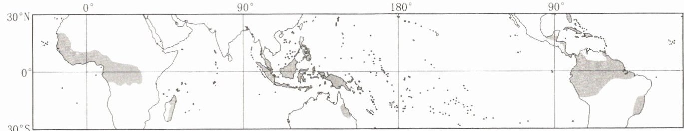 下图为某气候类型分布示意图。读图,回答第12、13题。