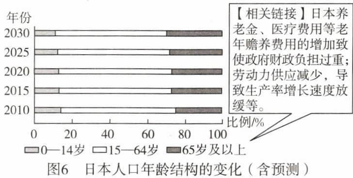 (4)根据图6中的相关链接说明日本人口增长缓慢产生的影响。(2分)