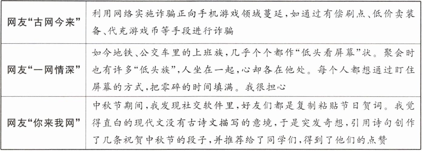 (2)结合上述3名网友的发言,运用所学知识,就如何合理利用网络发表你的看法。(6分)