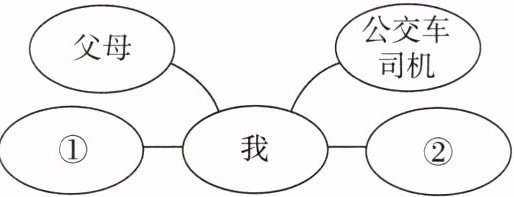 (关系图:中心为“我”,上方左右分别为“父母”“公交车司机”,下方左右分别为“①”“②”)