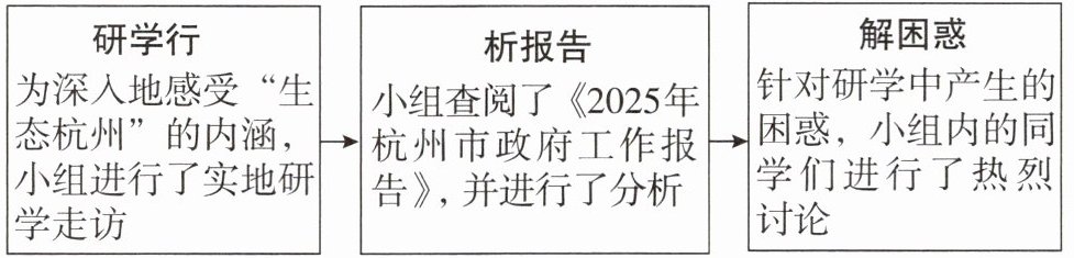 8. 小王的家乡在浙江杭州,他所在班级的研学小组就“建好生态杭州”开展2025年主题研学活动(过程见下图),受到各方好评。这一活动告诉我们要 ( )