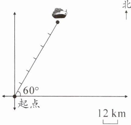 从起点向东偏北$60^{\circ}$方向行驶$72÷12 = 6$(厘米);
