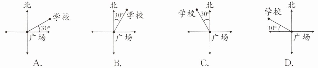 2.以广场为观测点,学校在北偏东60°方向上,下图中正确的是(