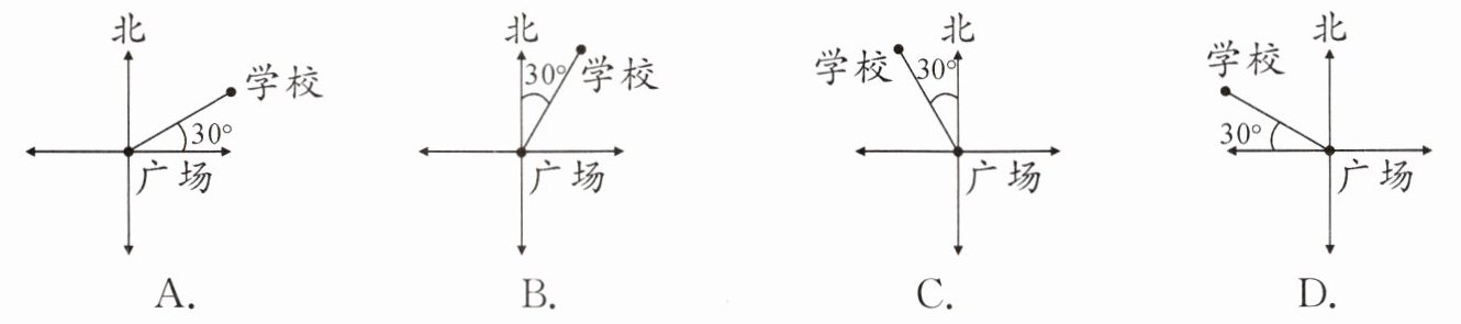 1.以广场为观测点,学校在北偏西30°方向上,下图中正确的是(