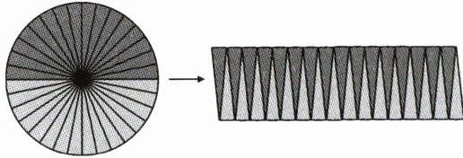 6. 把一个圆沿半径剪成若干等份,然后拼成一个近似的长方形,量得这个长方形的周长比原来圆的周长增加了8 cm。这个圆的面积是多少平方厘米?(5分)