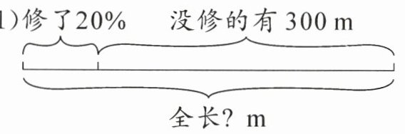 解析:本题考查已知部分量和部分量占总量的百分比,求总量。已知修了$20\%$,则没修的占全长的$1 - 20\% = 80\%$,没修的长度为$300$米,用没修的长度除以其占全长的百分比,即可求出全长。