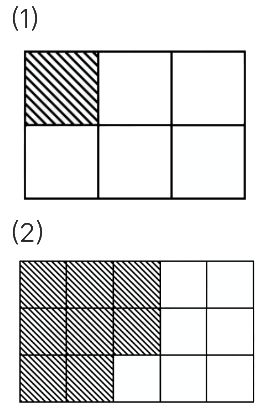 答案:先把长方形沿水平方向平均分成$2$份,将其中$1$份涂上一种阴影;再把涂阴影的部分沿垂直方向平均分成$3$份,将其中$1$份涂上另一种更深的阴影。
