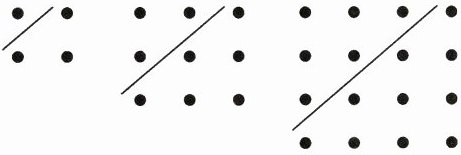 4. 古希腊著名的毕达哥拉斯学派把1,3,6,10…这样的数称为“三角形数”,把1,4,9,16…这样的数称为“正方形数”。从下右图中可以看出,任何一个大于1的“正方形数”都可以看作是两个相邻的“三角形数”之和。下列算式中,符合这一规律的是(