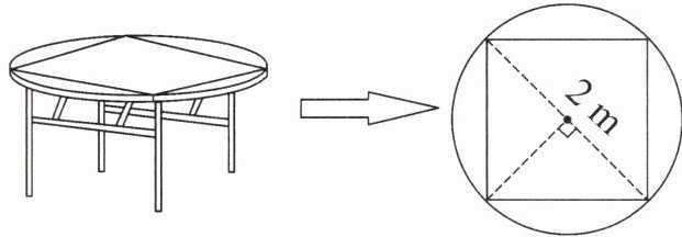 三、一张可折叠的圆桌(如图),直径是2 m,折叠后是一个正方形。折叠部分的面积是多少平方米?
