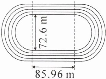 二、如图,一条跑道的宽是7.2 m,这条跑道最内侧和最外侧的周长差是多少米?