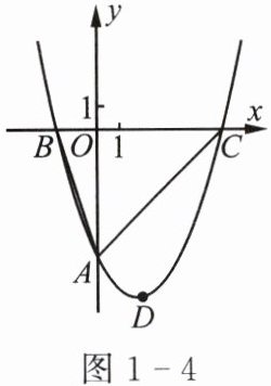 例3 如图1-4所示,经过点A(0,-6)的抛物线$y= \frac{1}{2}x^2 + bx + c$与x轴相交于B(-2,0),C两点.