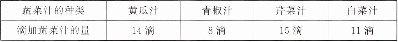 |滴加蔬菜汁的量|14滴|8滴|15滴|11滴|