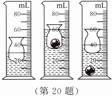 20. 小明想知道一个水晶球的体积,他做了如图所示的三个实验。由图可知,该水晶球的体积是______立方厘米。