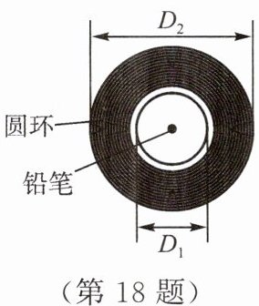 18. 把一条厚薄均匀的纸带紧密地环绕在圆柱形铅笔上,直至恰好能套进一个圆环内(如图),纸带环绕了n圈,则纸带厚度的表达式为______。