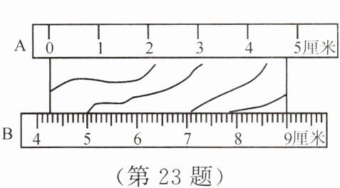 23. 如图所示,现用A、B两把不同规格的尺子测量同一物体的长度,用______尺测量时,准确度较高;用______尺测量时,尺子的摆放位置不正确。该物体的长度是______。