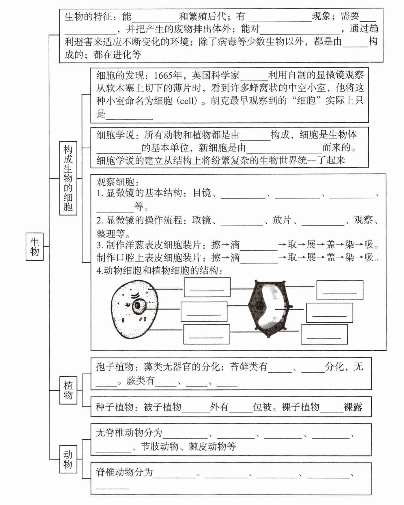 生物的特征:能____和繁殖后代;有____现象;需要____,并把产生的废物排出体外;能对____,通过趋利避害来适应不断变化的环境;除了病毒等少数生物以外,都是由____构成的;都在进化等