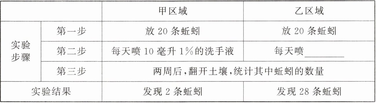 | 实验结果 | 发现2条蚯蚓 | 发现28条蚯蚓 |