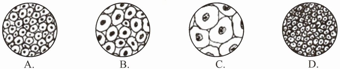 (4)若用同一显微镜观察同一标本4次,通过调节目镜、物镜和细准焦螺旋,观察结果如下图所示,则其中视野最暗的是______。(填字母)