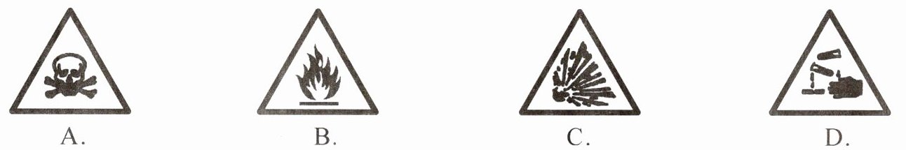 4. 下列常见的危险警告标志中,表示易爆物的是 ( )