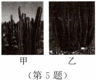5. 如图所示为生长在美洲沙漠中的仙人掌科植物甲和生长在非洲沙漠中的大戟科植物乙。下列分析中,错误的是( )
