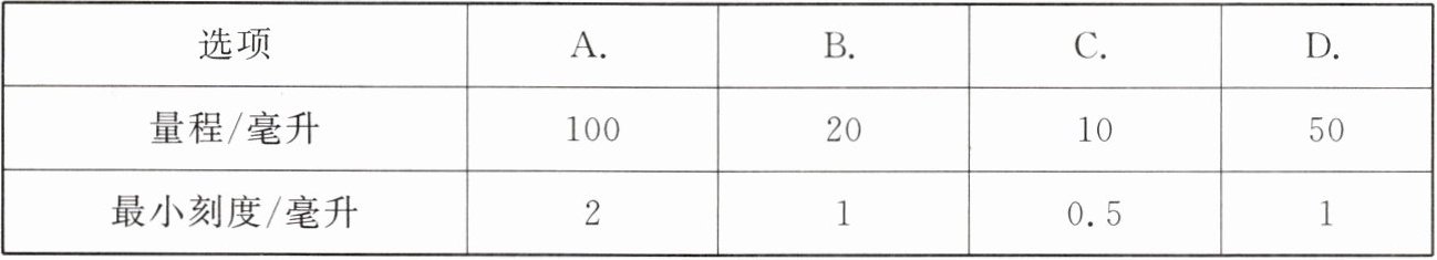 | 量程/毫升 | 100 | 20 | 10 | 50 |