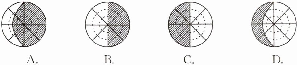 6. 下列四幅北半球昼夜情况示意图(阴影部分表示黑夜)中,表示夏至日的是( )
