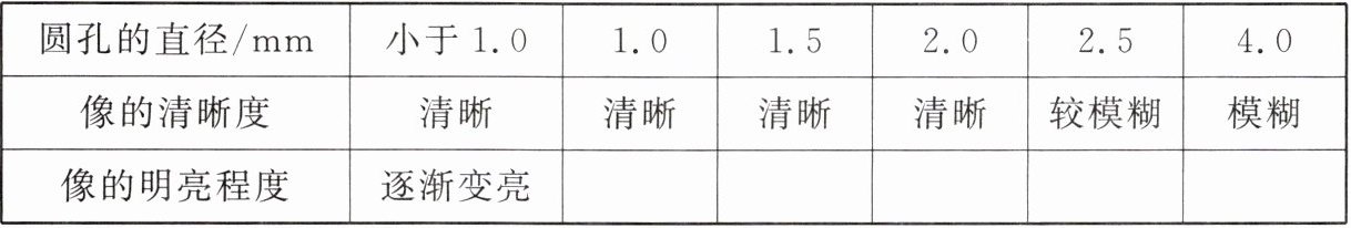 (3)验证猜想3时,固定烛焰、小孔和光屏的位置,改变圆孔的直径,观察到的现象如下表所示: