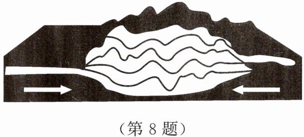 8. 板块构造学说是20世纪重要的科学成果之一。如图所示为某种类型的板块运动示意图,下列有关该图示的叙述,错误的是( )