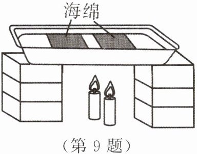 9. 某同学利用铝盆、海绵、蜡烛、水等材料设计了一个模拟地球板块运动的实验(如图)。实验过程中发现蜡烛加热区的水流上升,两块海绵向左右两侧运动。该实验模拟的板块运动和板块边界分别为( )