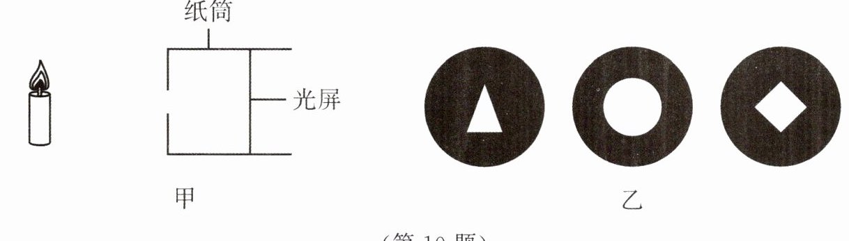10. 某学习小组用如图甲所示的圆柱形纸筒做“探究小孔成像规律”的实验,设置了图乙所示的三个形状不同的小孔,进行对比实验,则下列对实验结果的预测,正确的是( )