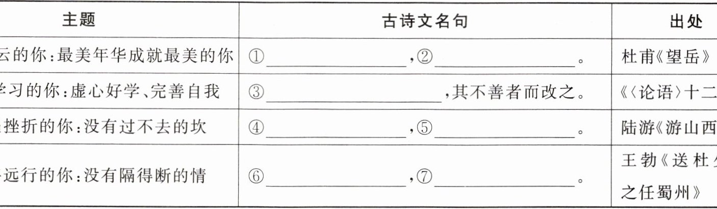 6.在纪念册里,同学们想引用古诗文名句作为彼此赠言,请帮他们补充完成。(7分)