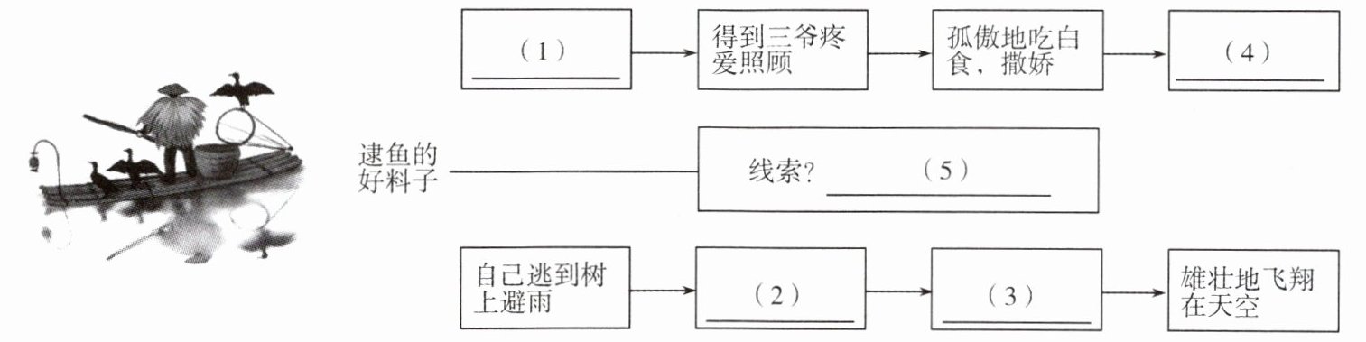 (1)______ → 得到三爷疼爱照顾 → 孤傲地吃白食、撒娇 → (4)______