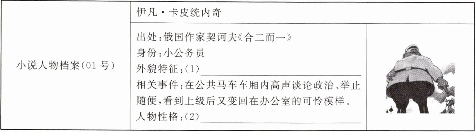 9.阅读小说,将小说人物档案(01号)补充完整。(3分)