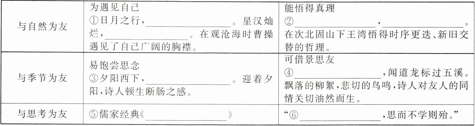 | 与思考为友 | ⑤儒家经典《______》 | ⑥______,思而不学则殆。 |