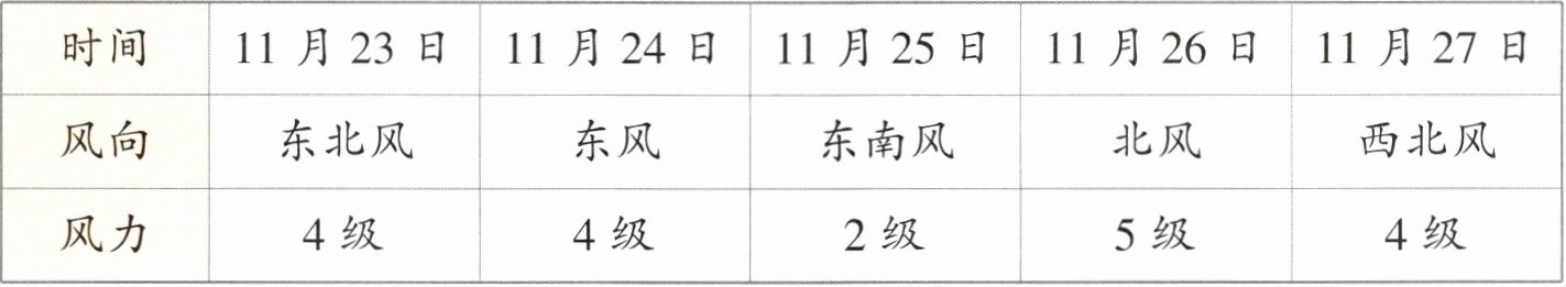 7 下表是某地连续五天的风向与风力情况,回答下列问题。