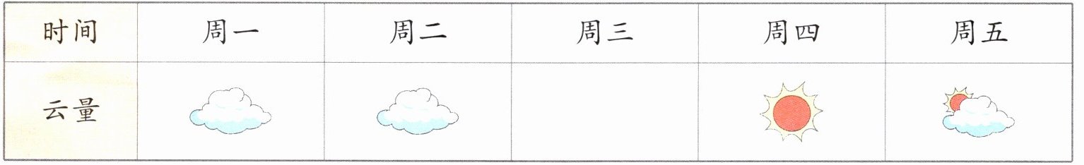 6状状对云很感兴趣,他利用午休时间对云进行观察,并记录了一周五天的云量情况
