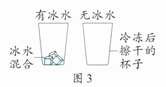 (3)如图3,两个杯子外壁都有水珠,说明水珠的形成______(填“是”或“不是”)有冰水的原因。