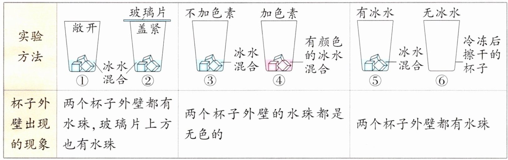 5 下面是元元观察杯子外壁变化的实验记录单,请分析实验现象并回答下列问题。